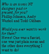 ![]() The Online Magazine about New York Designers |