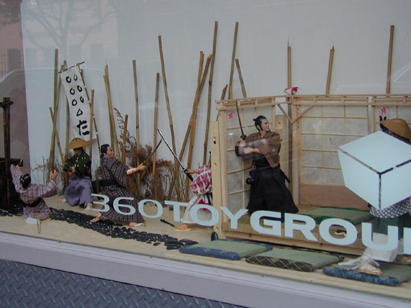 JEH: When I designed in my apartment, I had my drafting table in my apartment, I also had a lot, a lot of toys, just everywhere. For me, toys at first were very inspirational. LG…Me too! JEH: …They would bring me into a different realm of designing, and I'd look at toys and I'd see the way they were made, and their clothing, and so toys were a large aspect of me, designing, even before I got into the whole aspect of toy designing myself. And, that's a big reason why I opened a toy store as well, because it filled up my apartment. There was a point, where everything was displayed, and my floor was filled with soldiers and vehicles, and you had to step around everything… DB: …So the contents of this store used to be your living room… JEH: My walls were filled, thumbtacked with carded figure, and now I've gotten to a point where all of my toys are boxed up and stockpiled. |