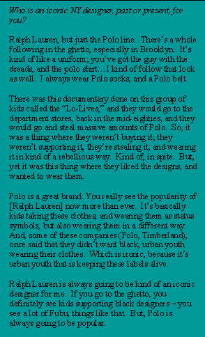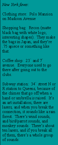 Jakuan El Haseem represents, for us, one of those "only in New York" possibilities. Transforming himself from the self-described ghettos of the Bronx to sought after designer in Japan, he really hasn't uprooted that much at all; he's still a New York creation. Jakuan's store, 360 Toy Group, is an odd at first mix of hard to find action figures and his own clothing line. The lines include "Rock Hard," which he describes as mountaineering with a hip-hop twist, and "Oh, Snap!," a line of Tee shirts incorporating photographs by Ricky Powell, a cult favorite who has documented the rap and hip-hop scene for almost two decades. 360 is in one of our favorite neighborhoods (we